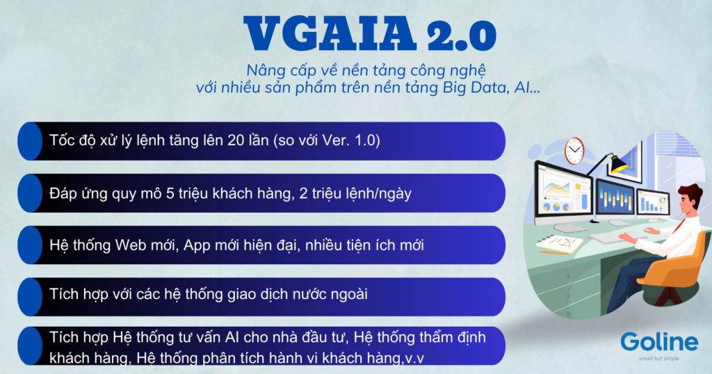Goline tin rằng thông qua việc nâng cấp Core chứng khoán VGAIA 2.0, khách hàng sẽ có những trải nghiệm thú vị hơn, tối ưu hơn, với các chứng năng toàn diện hơn. Chúc cho sự hợp tác giữa hai công ty ngày càng thành công và bền vững.